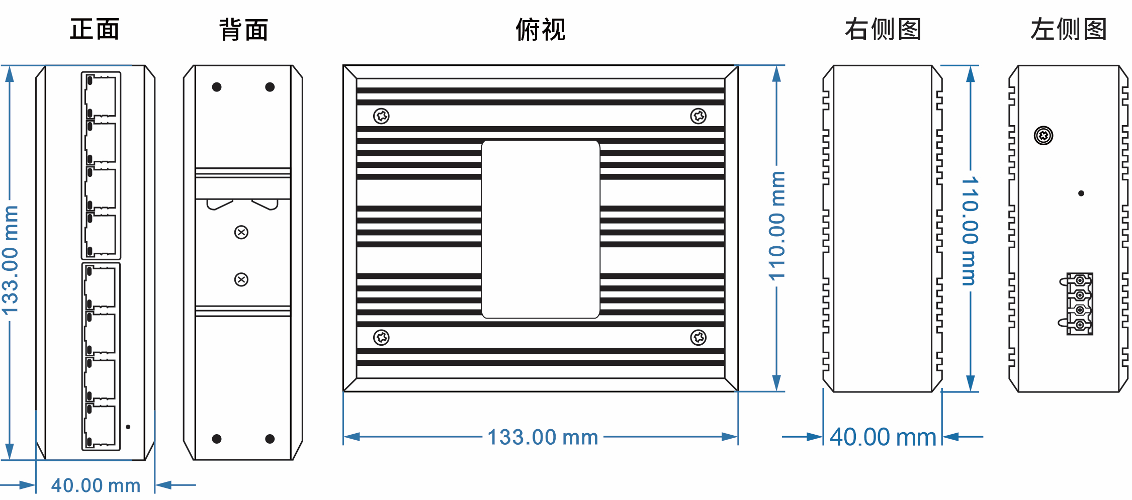 133mm(長) x 120mm(寬) x 41mm(高) 安裝方式:導(dǎo)軌安裝、壁掛式安裝 |